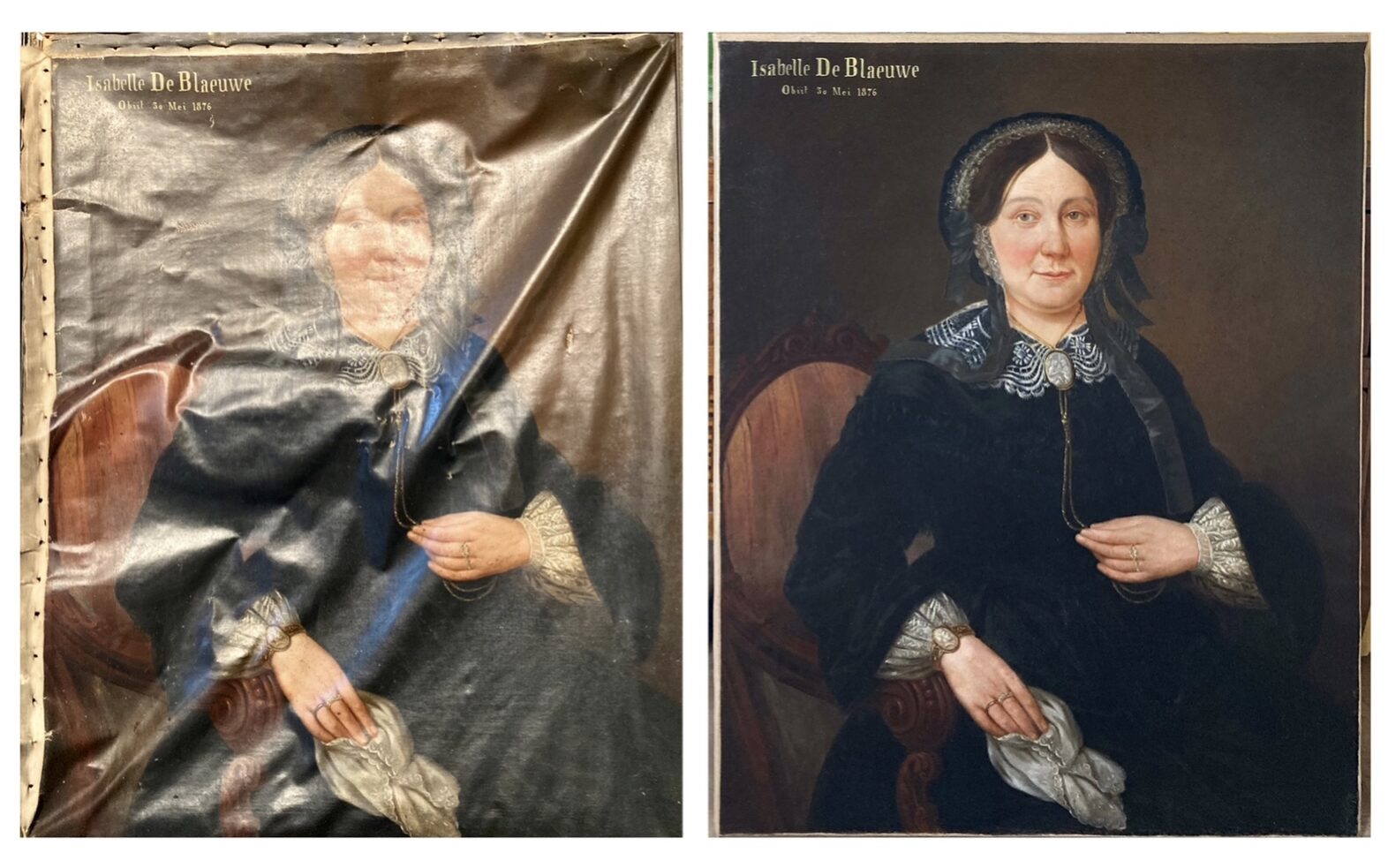Portrait d’Isabelle de Blaeuwe, huile sur toile désolidarisé du châssis