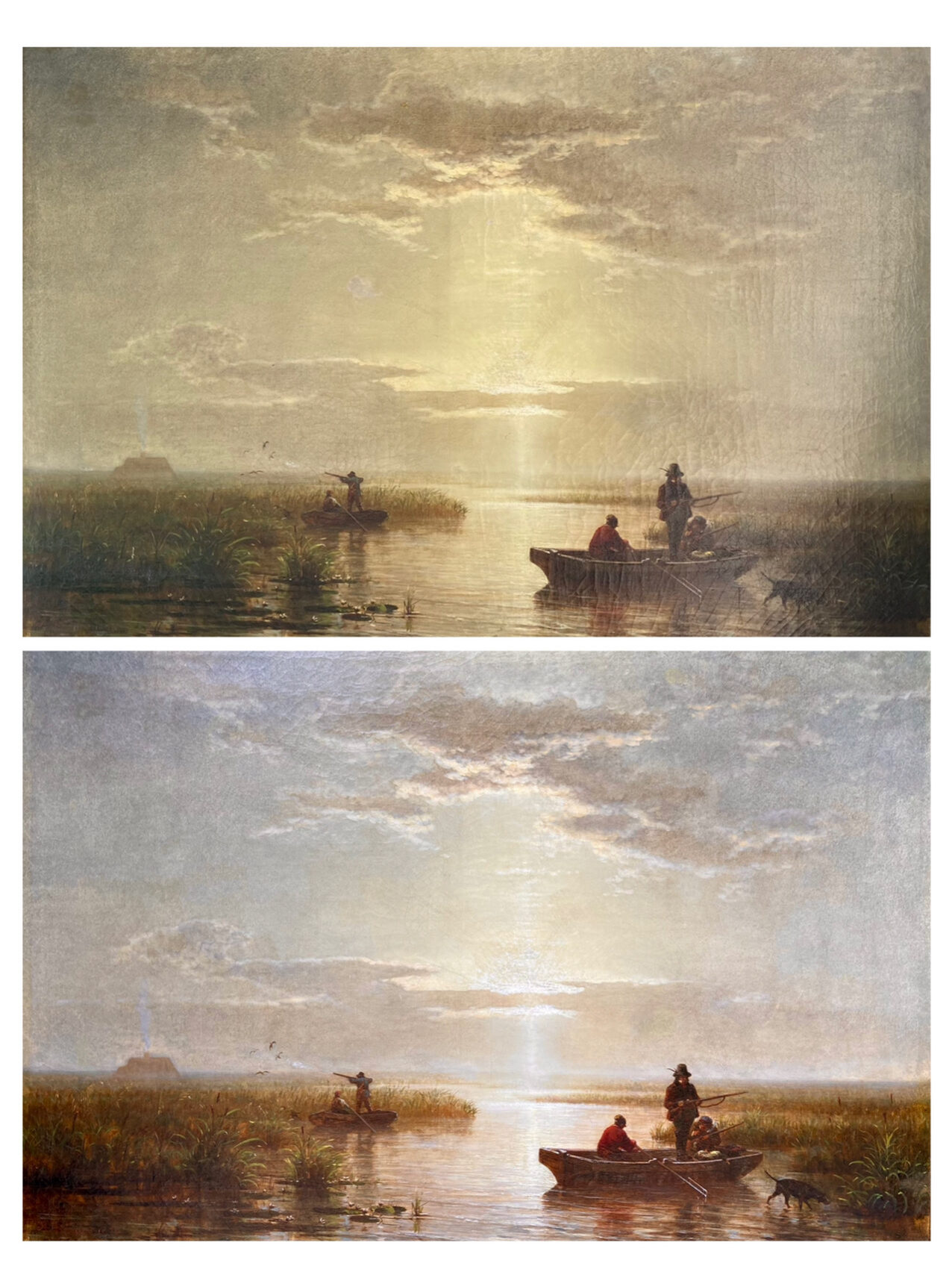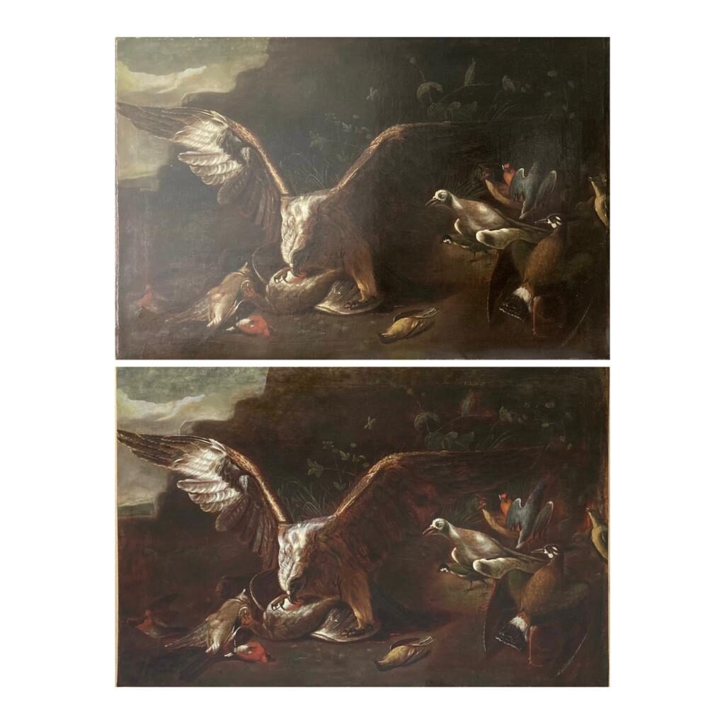 Nettoyage avec dégagement de nombreux repeints impliquant de nombreuses retouches